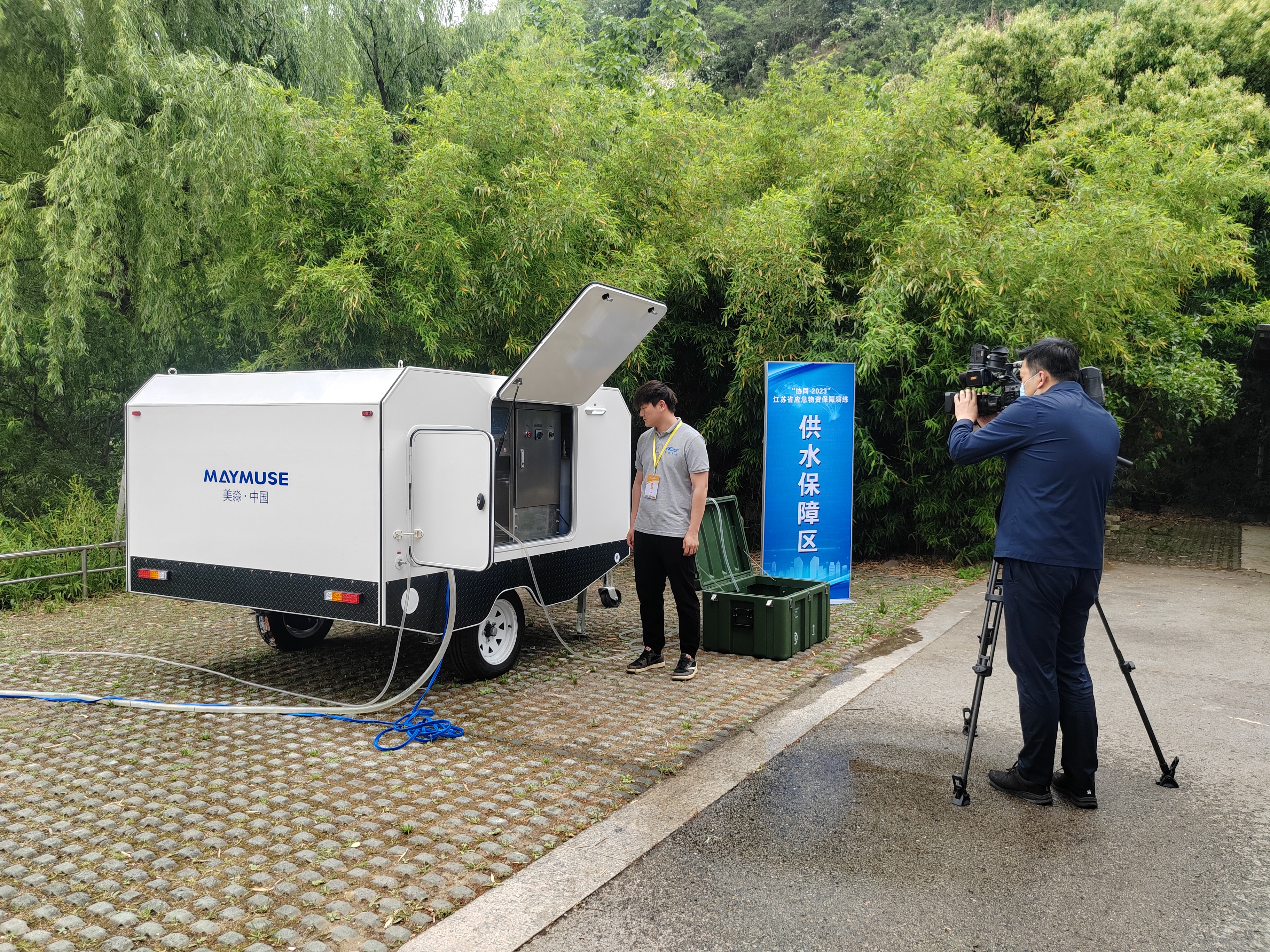 演練現(xiàn)場,美淼環(huán)保應(yīng)急供水保障車,作為應(yīng)急供水保障裝備,保障人民的飲水安全,在演練中發(fā)揮產(chǎn)品優(yōu)勢。該產(chǎn)品采用美淼新型石墨烯膜電容電吸附核心技術(shù)和承壓陶瓷膜過濾技術(shù),污染物去除效率高,通過高效水凈化可滿足500-1500人的生活和飲水需求;拖車結(jié)構(gòu)可適應(yīng)各種復(fù)雜路況,環(huán)境適應(yīng)性強(qiáng);廣泛應(yīng)用于環(huán)境惡劣,自然水質(zhì)差等多地域及環(huán)境下,也適應(yīng)應(yīng)急救援,分布式地區(qū)水電保障、軍隊作戰(zhàn)、地質(zhì)勘探、石油開采等場景;光伏+市電+自備發(fā)電混合動力模式,保證系統(tǒng)水電聯(lián)供的持續(xù)運行,滿足不同地區(qū)、不同狀況下供水和供電的應(yīng)急需求;集成控制模塊適應(yīng)不同工藝自由組合;自動化控制,可輕松實現(xiàn)無人值守。